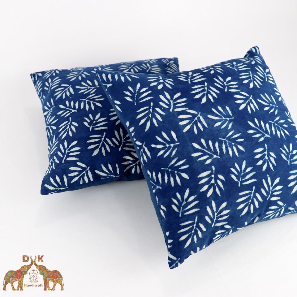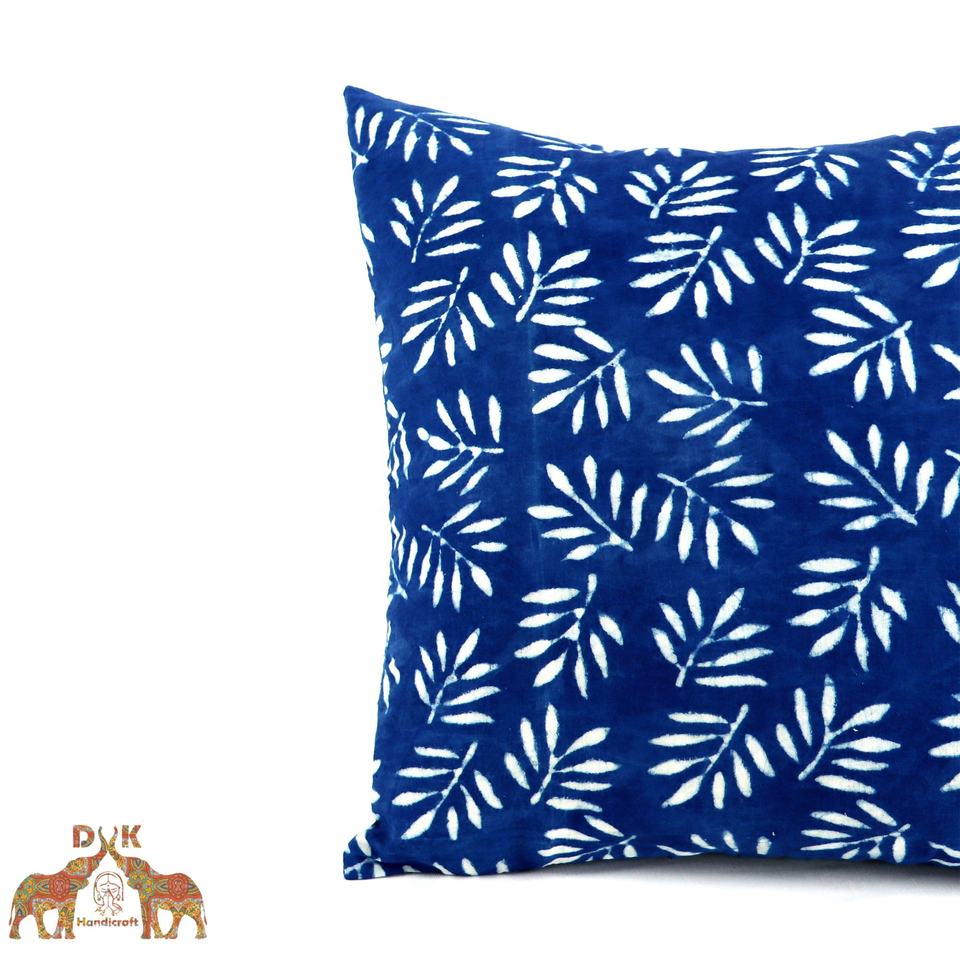 Funda de almohada con estampado de hojas de algodón HandBlock, fundas de cojín índigo, funda de cojín de algodón con estampado floral índigo real