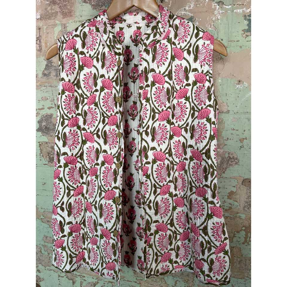 Chaleco Estilo Mughal con Estampado Artesanal, Ropa de Abrigo para Primavera/Verano, para Oficina, Temporada de Invierno, Decoración con Botones, Cinturón, Tejido de Lana
