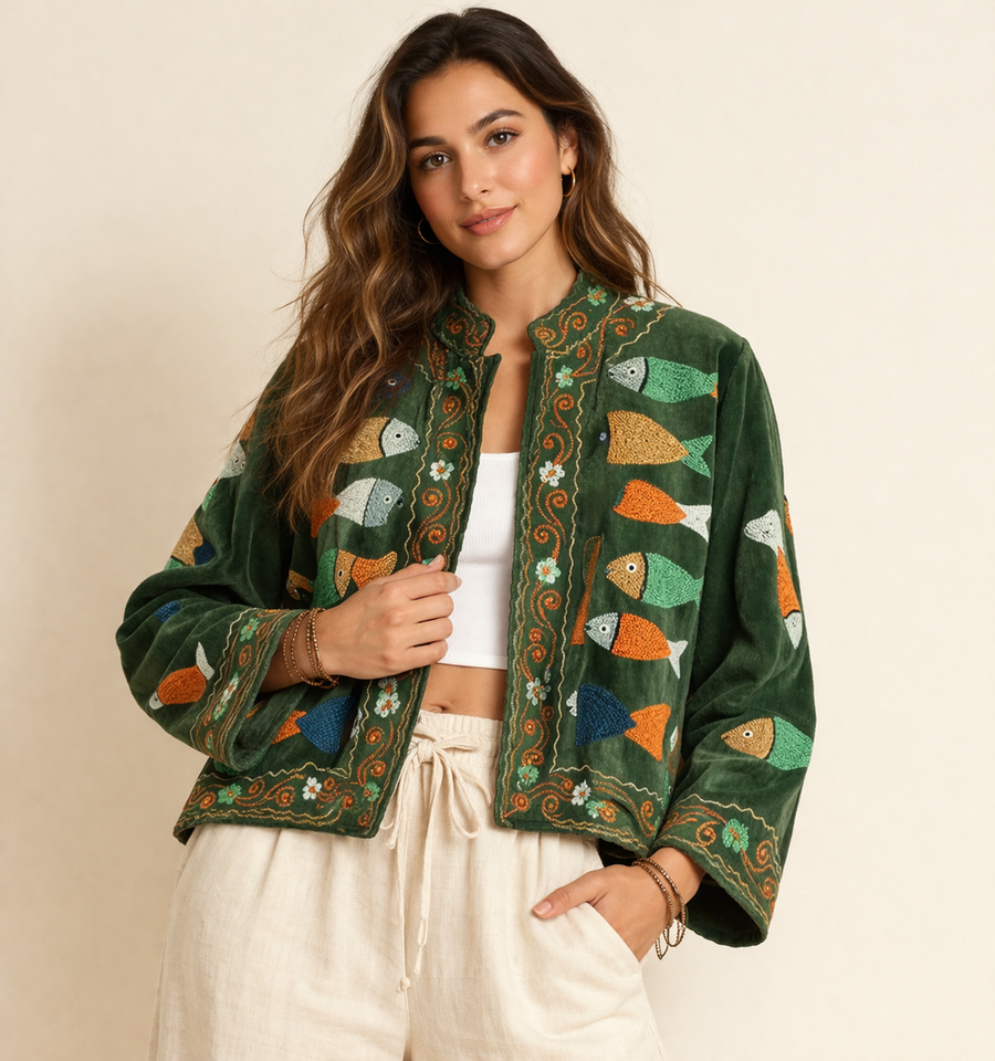 Vestido largo tipo kurta de terciopelo Suzani, transpirable, de corte holgado, con cuello redondo y estampado floral para mujer, para uso diario, hecho en India.