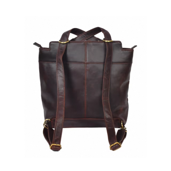Mochila de cuero genuino 100% hecha a mano para mujer con diseño atemporal y organización funcional