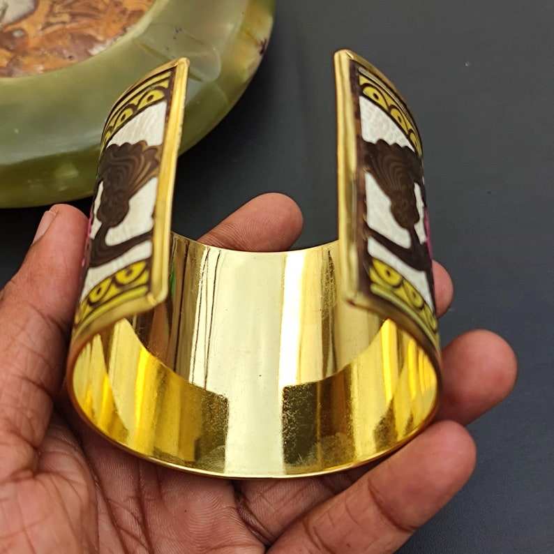 Brazalete ancho de diseñador floral de latón puro 100% hecho a mano, brazalete ajustable, Regalo para mamá
