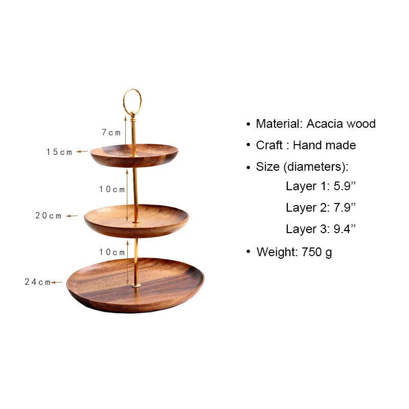 Product name:Handcrafted 3-tier round cake stand tray made from rich acacia wood