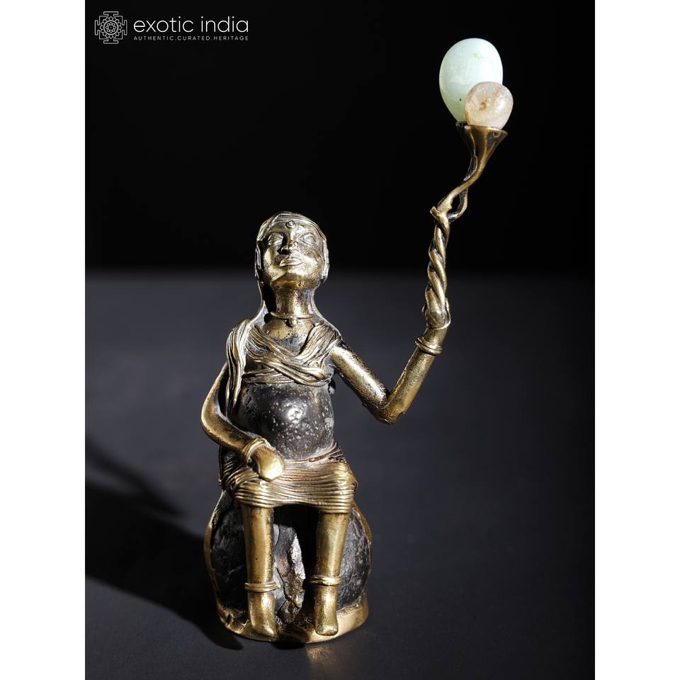 Escultura artesanal de latón y piedra de 6 pulgadas, vendedor de globos, Decoración de mesa
