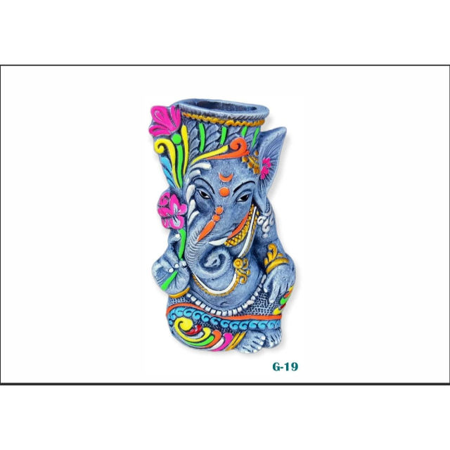 Jarrón Decorativo de Arcilla Hecho a Mano con Diseño Art Deco de Ganesha para Bodas, Cumpleaños y Diwali (Diseño Vertical)