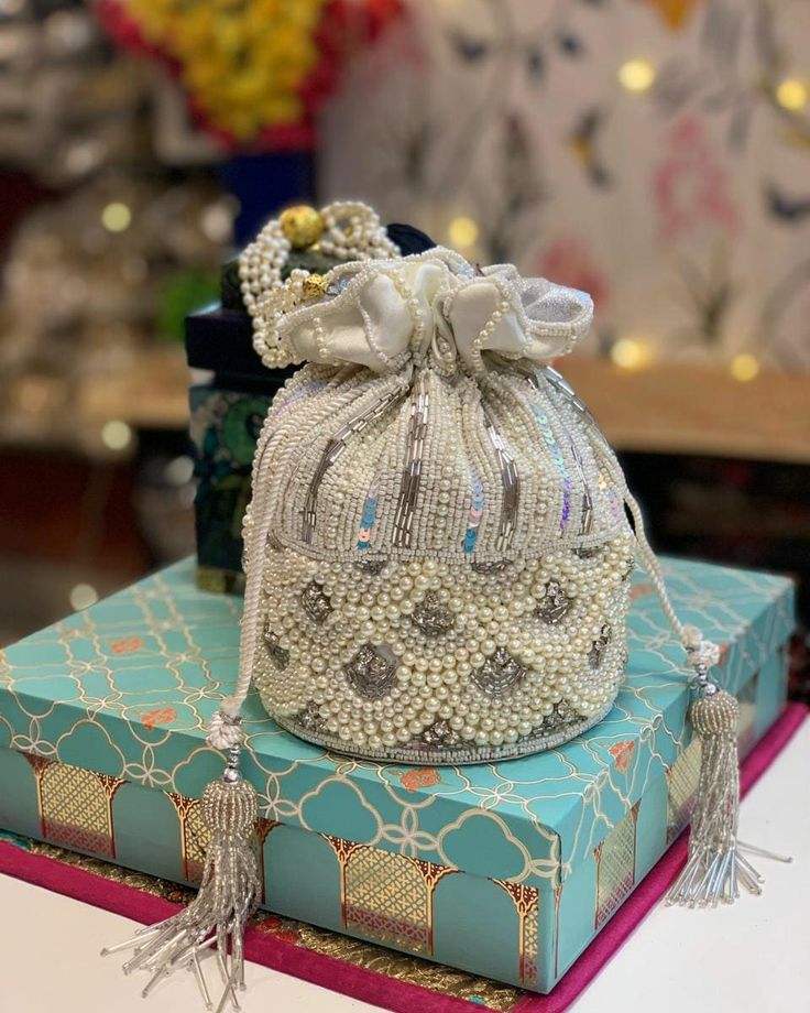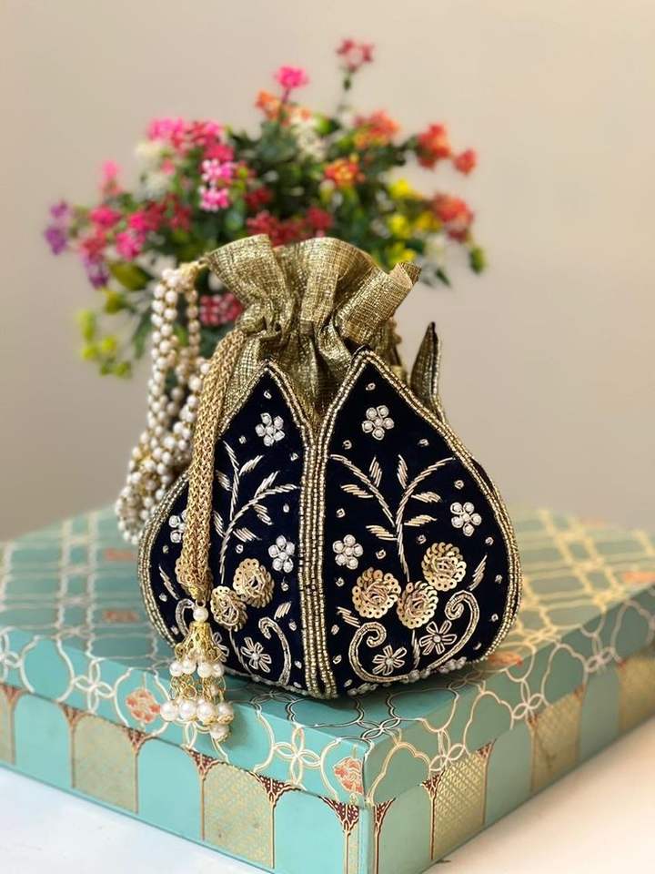 Bolsa de Mano Artesanal con Cuentas y Cordón de Seda, Azul, Estilo Étnico, para Bodas, Fiestas, Moda Femenina, Regalo, Bolso de Mano