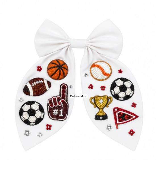 Moño Artesanal con Cuentas para el Día del Partido, Accesorio para el Cabello para Animadoras de Fútbol, Baloncesto y Otros Deportes