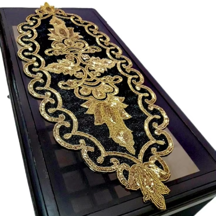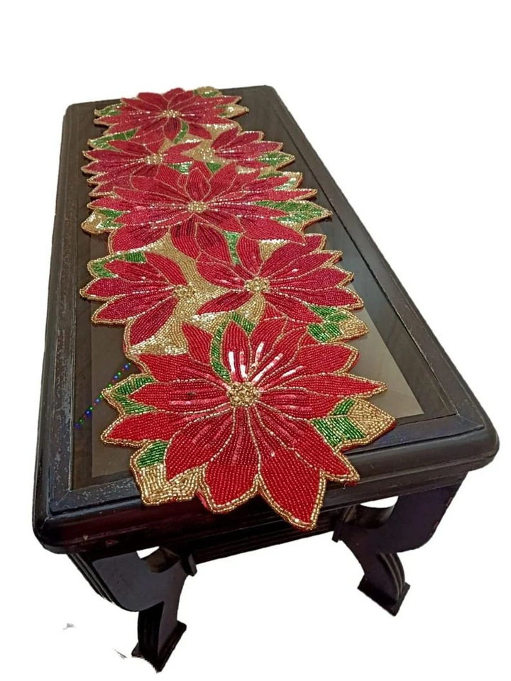 Camino de Mesa Artesanal con Cuentas y Bordado Multicolor, Camino de Mesa de Lujo para Bodas con Cuentas de Semillas y Bordado a Mano