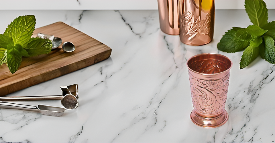 Tazas de vidrio de metal de cobre en relieve Beautyfull hechas a mano Mint Julep Cup Drinkware Accesorios
