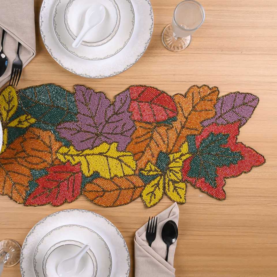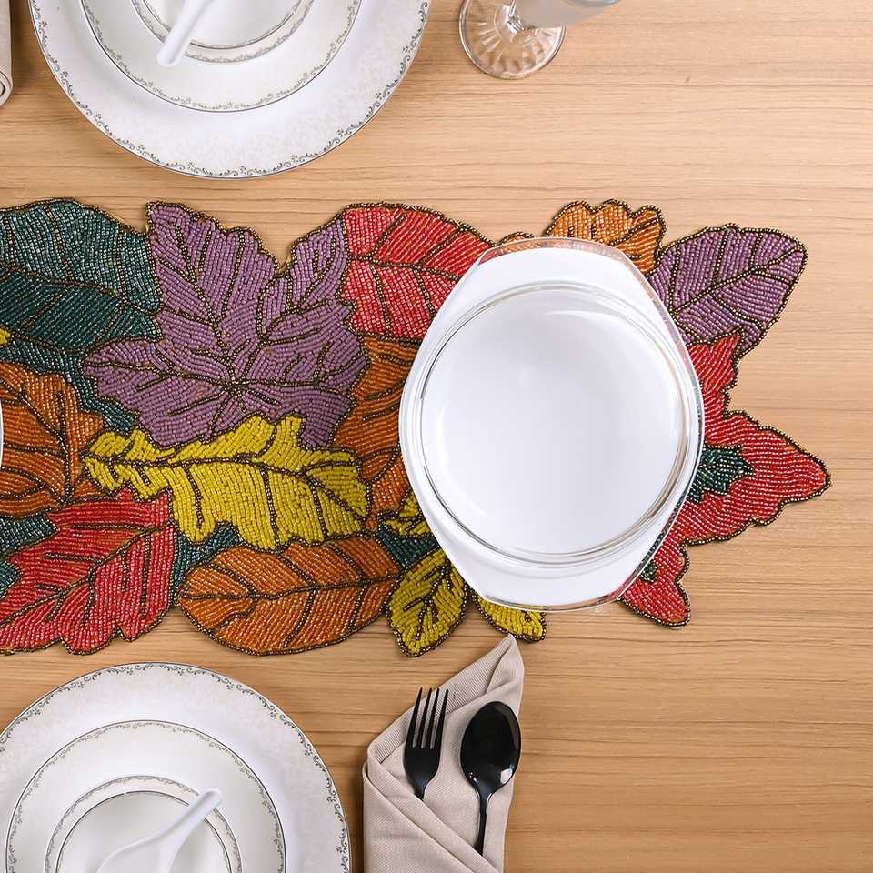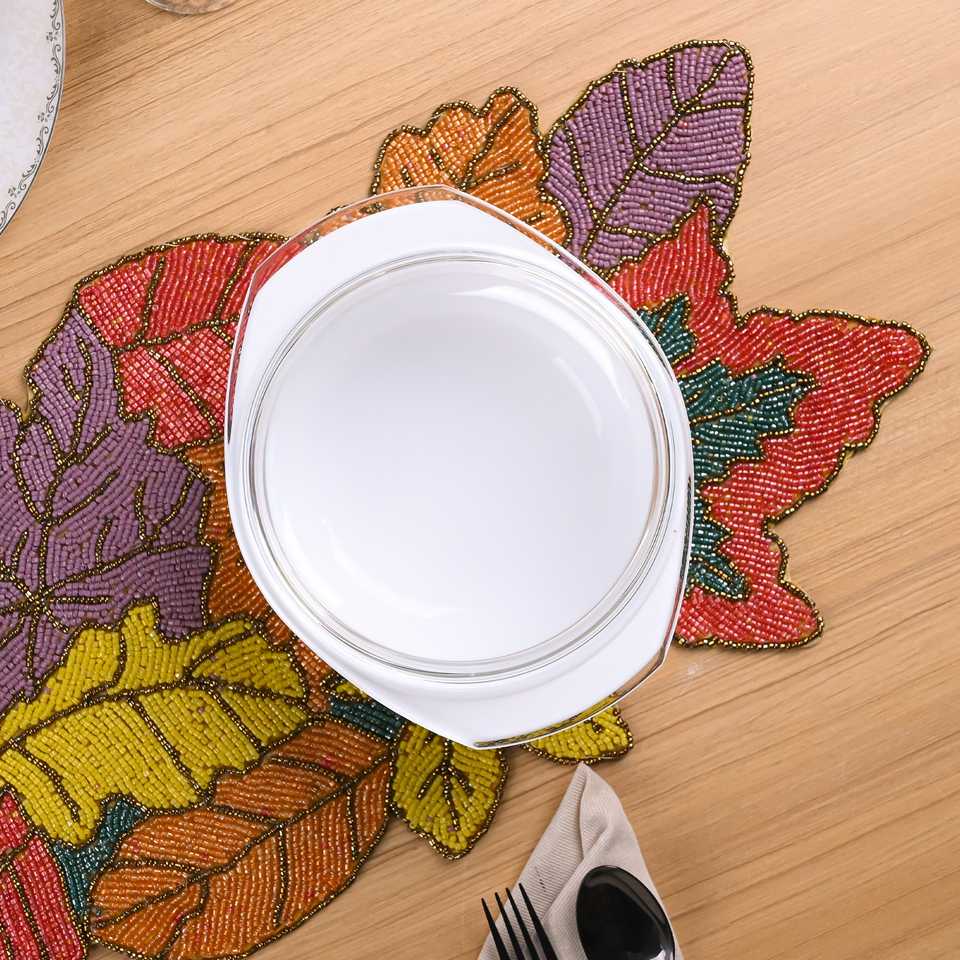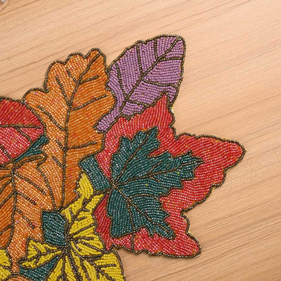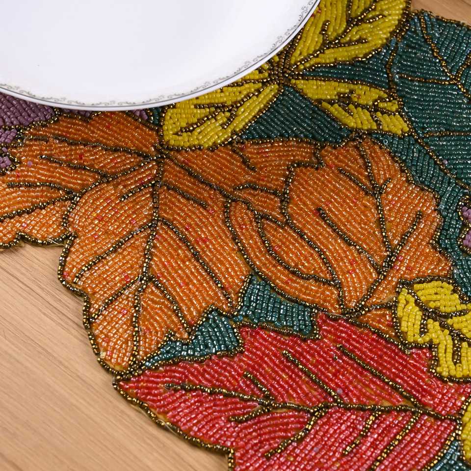 Mantel Individual Artesanal Estilo Bohemio Cromático, Ecológico y Sostenible, Hecho con Cuentas y Base de Satén, Juego de 1, 1200g, Versátil y Fácil de Usar