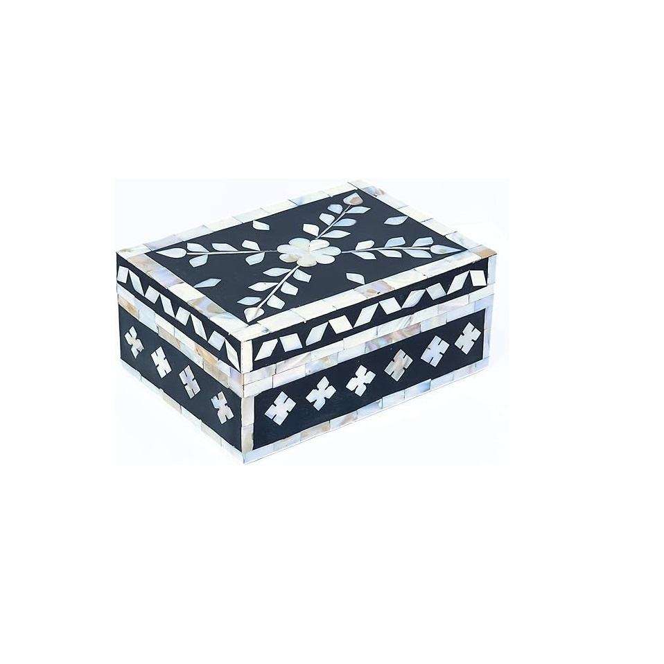 Caja Decorativa Artesanal con Incrustaciones de Hueso y Diseño Floral, Caja Multiusos para Guardar Recuerdos