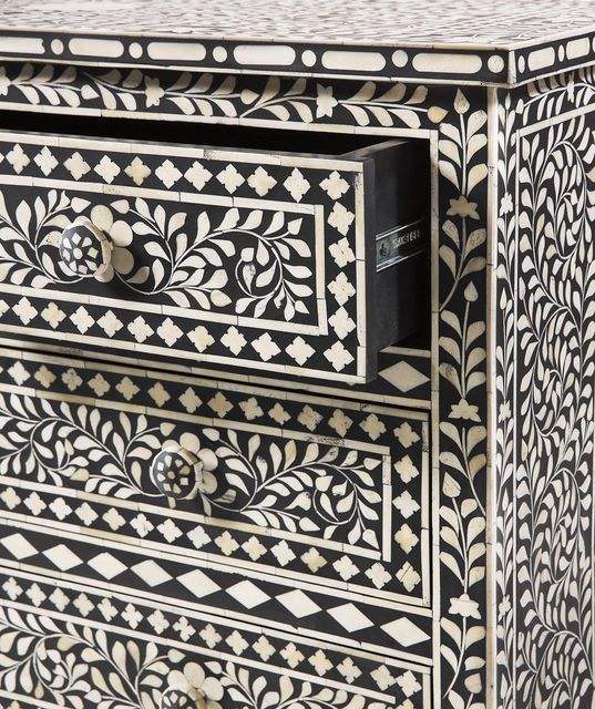 Mesa auxiliar con incrustaciones de hueso artesanal con patrón floral, mesa decorativa para sala de estar, dormitorio y decoración del hogar