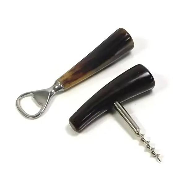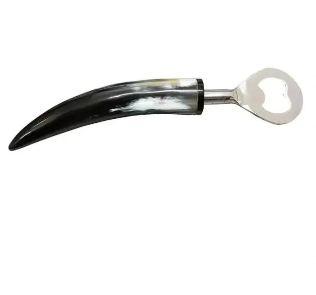 Abridor de botellas de latón hecho a mano con cuerno de búfalo y mango de cuerno de buey para cerveza, bebidas frías y vino personalizado con logotipo OEM