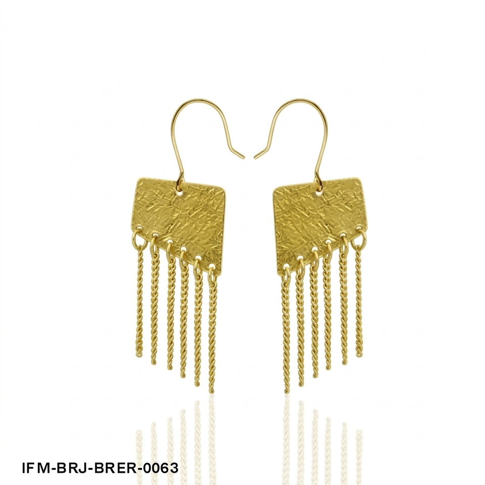 Pendientes Geométricos de Latón Hechos a Mano, Rectángulos Texturizados, Cadenas Finas Colgantes, Chapado en Oro, Acabado Resistente al Deslustre, Regalo