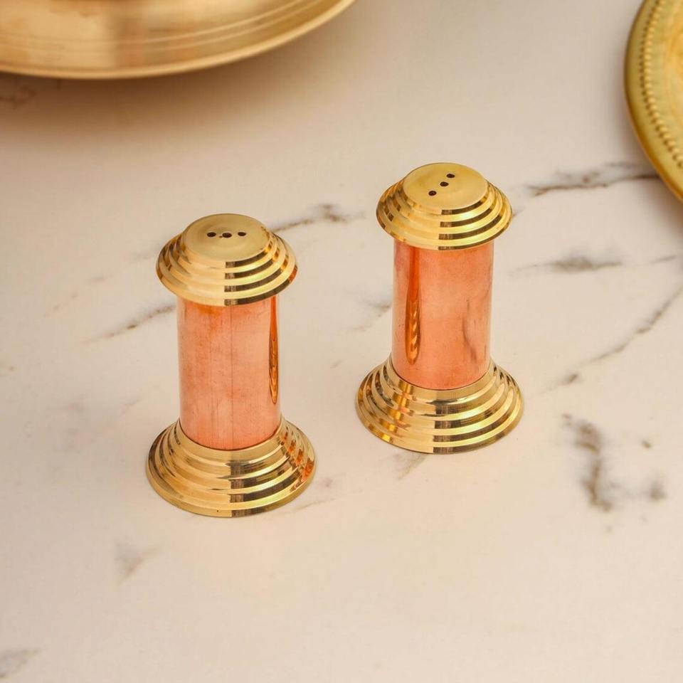 Juego de sal y pimienta de latón hecho a mano con un diseño elegante perfecto para mesas de comedor finas e interiores de cocina clásicos