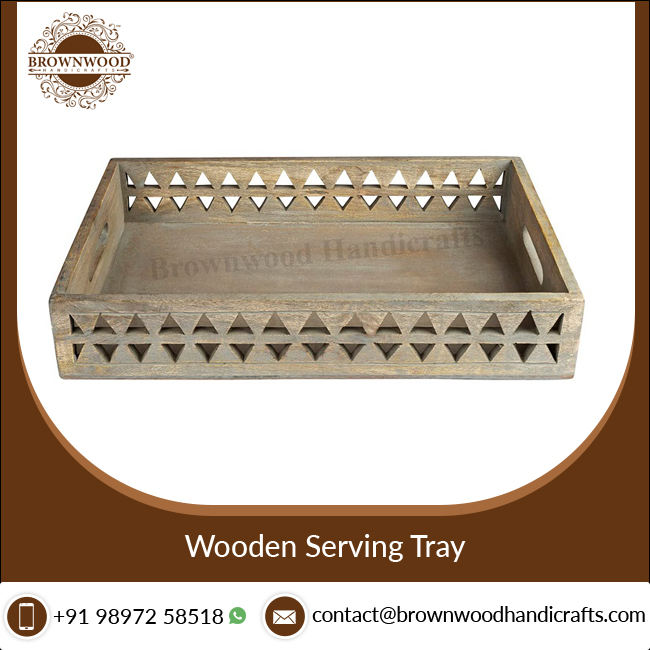 Wooden Hand Carved Serving Tray With HandlesProduct Name