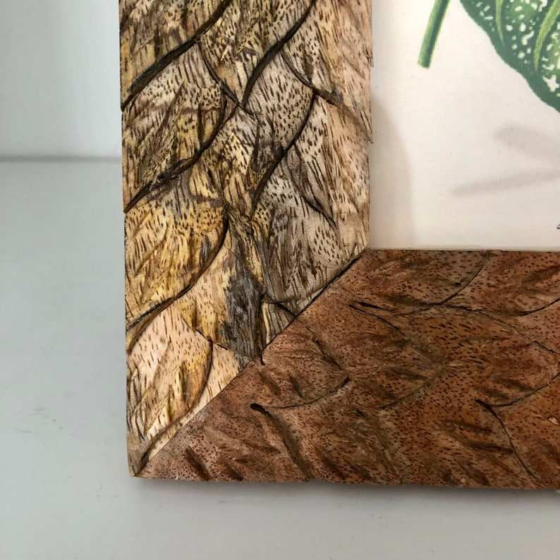 Marco de Fotos de Madera de Mango Tallada a Mano, Ecológico, con Detalles de Hojas Grabadas | Artesanía Vertical Independiente Saniya