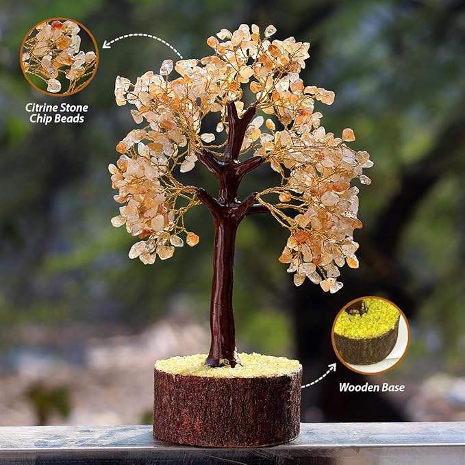 Árbol citrino hecho a mano con 500 cuentas de piedras preciosas para el éxito financiero y la claridad Árbol de energía citrino vibrante con 500 cuentas