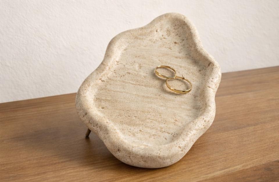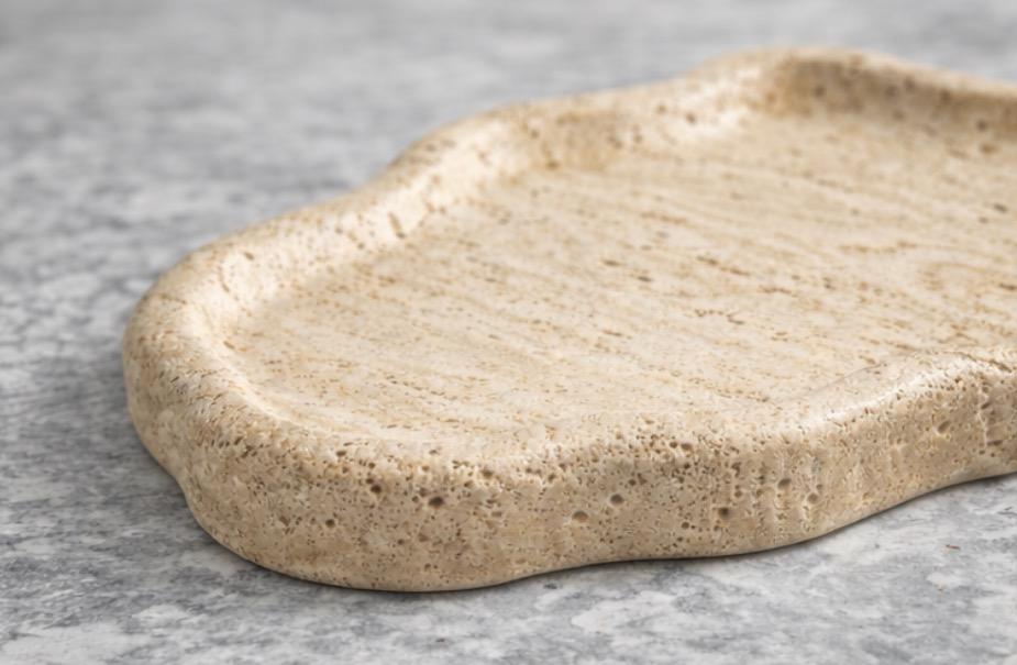 Bandeja de Piedra Travertino con Forma de Nube, Acabado Brillante Moderno, Hecha a Mano, Mármol Natural, Organizador Multifuncional Decorativo para el Hogar