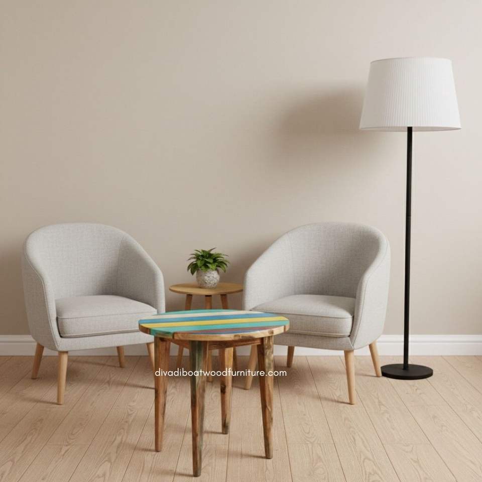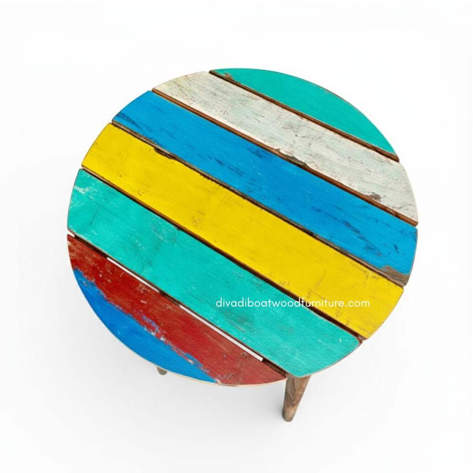 Mesa de Centro Artesanal de Diseño Redondo con Ranura, Madera de Barco Reciclada, Color Natural, para Interiores y Exteriores, Muebles para Hogar y Jardín