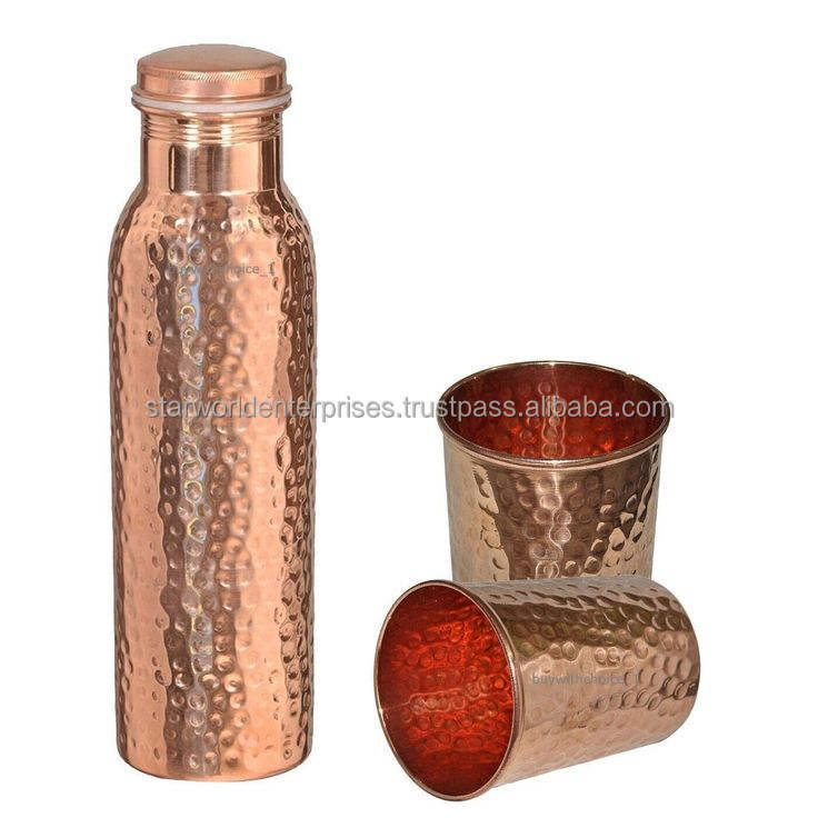 Juego de tazas y botellas de cobre hechos a mano | Vasos tradicionales de bienestar Ayurvédico | Suministro a granel económico de la India"