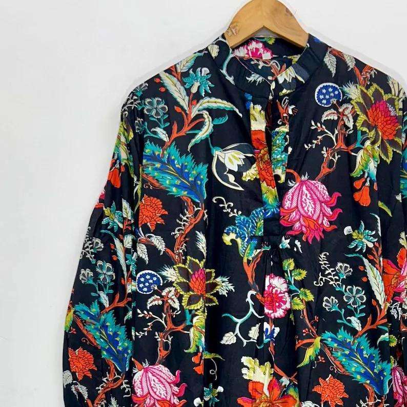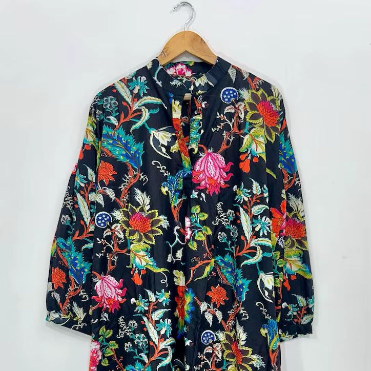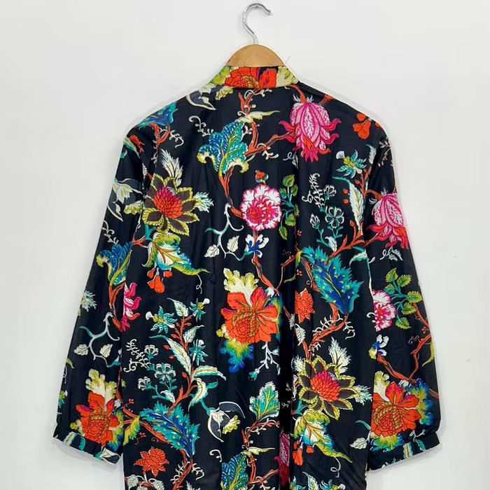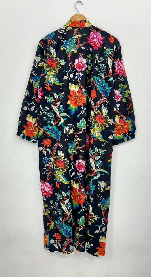 Bata Floral de Algodón Hecha a Mano: Vestido Estilo Kimono Boho