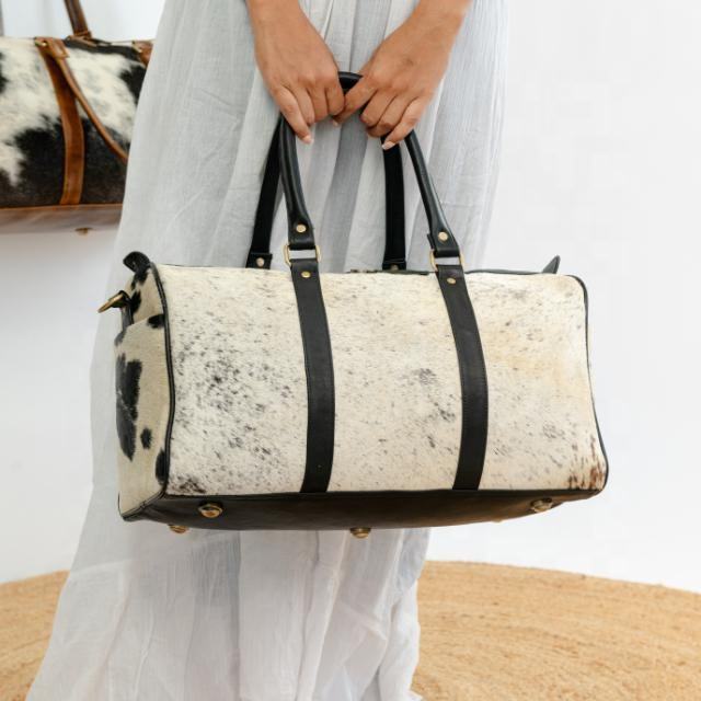 Bolsa de lona de cuero de vaca hecha a mano, cuero genuino de grano superior elegante Weekender, correa de hombro ajustable, bolsillo Interior para