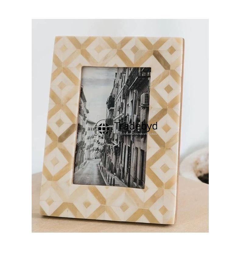Marco de Fotos con Incrustaciones de Hueso Hecho a Mano, Acabado Brillante de Primera Calidad, Elegante Marco Decorativo para Fotos de Tradebyd