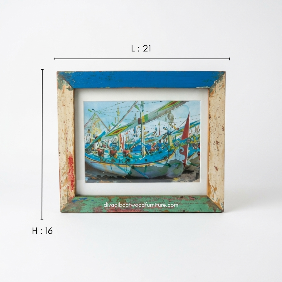Marco de Fotos Ecológico y Creativo Hecho a Mano con Madera de Barco Reciclada en Color Natural para Decoración de Paredes del Hogar, Venta al Por Mayor