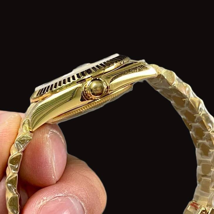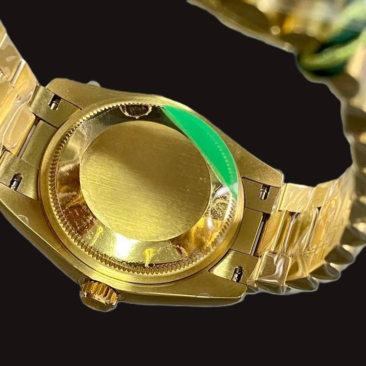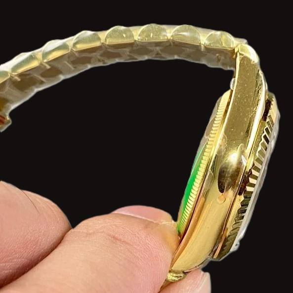 Reloj Mecánico de Hombre con Caja Redonda de Diseño Personalizado Hecha a Mano, Esfera con Números Romanos Verdes y Movimiento de Cuarzo Chapado en Oro