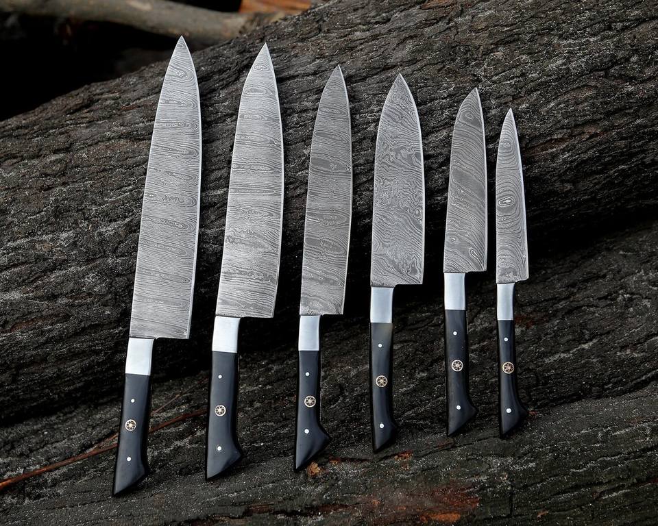 Juego de Cuchillos de Chef de Acero de Damasco Hechos a Mano con Mangos G10 y Acabado Plateado - Suministro al por Mayor para Restaurantes y Distribuidores