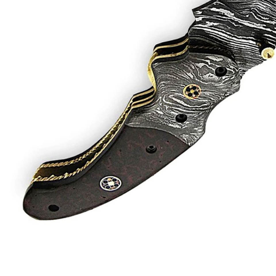Cuchillo plegable de hoja fija de acero de Damasco hecho a mano-OEM/ODM disponible logotipo personalizado y color