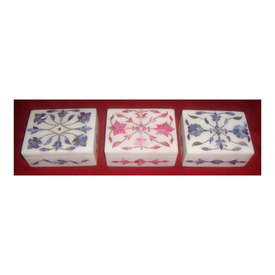 Cajas Decorativas Hechas a Mano con Diferentes Diseños Incrustados de Nácar Rosa y Azul para Frutos Secos Personalizadas