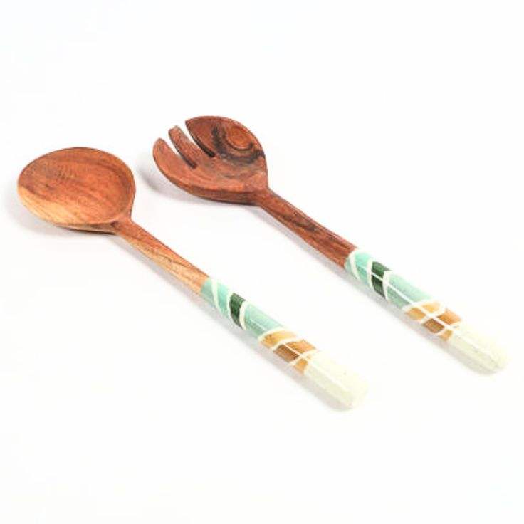 Juego de servidores de ensalada de diseño artesanal con mango de madera natural y estampado en esmalte, cubiertos para servir ensalada a un precio competitivo.