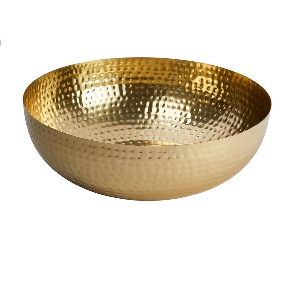 Tazón de Metal para Servir Frutas Secas y Bocadillos de Chocolate con Acabado Dorado, Diseño Artesanal