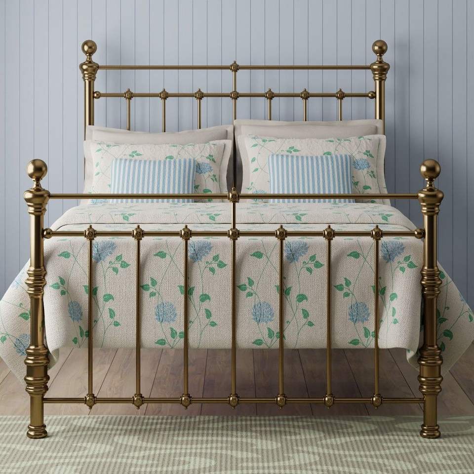 Base de Cama de Latón de Diseño Artesanal con Grabado Intrincado, Estructura Resistente que Realza el Ambiente Clásico del Dormitorio