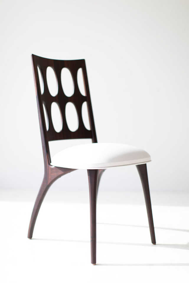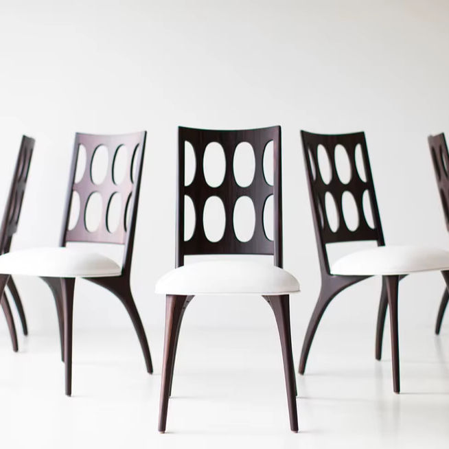 Silla de comedor hecha a mano con marco de madera esculpida, diseño artístico de espalda recortada ovalada, para interiores de comedor elegantes
