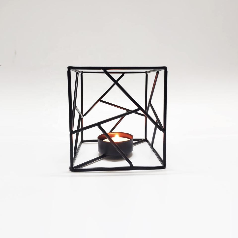 Portavelas de malla de alambre cuadrado geométrico de diseñador hecho a mano moderno negro Premium metálico portavelas decorativo de mesa