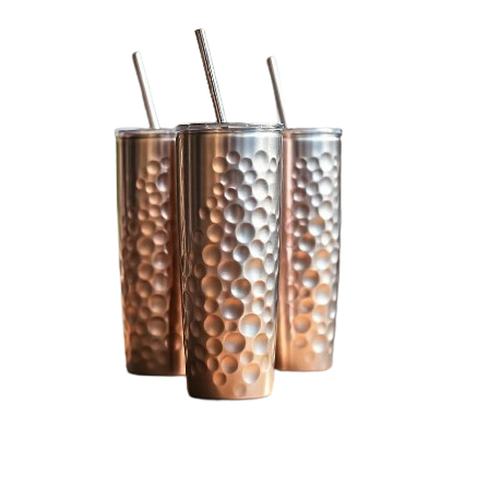 Vaso Artesanal de Acero Inoxidable con Acabado de Cobre Martillado, Moderno, con Pajita, Producto de Exportación de Alta Demanda