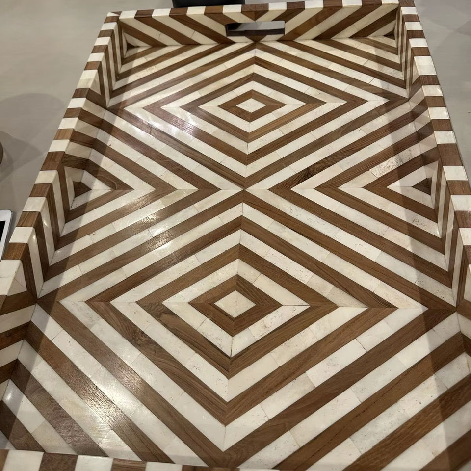 Bandeja Rectangular Hecha a Mano con Incrustaciones de Resina Duradera y Estilo Clásico para Mejorar la Decoración del Hogar en Comedores y Salas de Estar