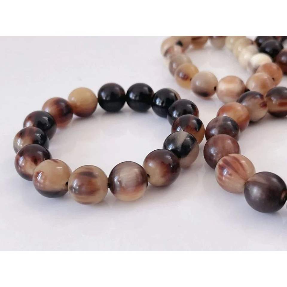 Pulsera de Cuerno de Vaca de Búfalo Ecológica Hecha a Mano con Cuentas Marrones Blancas Pulidas Regalo de Estilo Moderno para Cualquier Ocasión