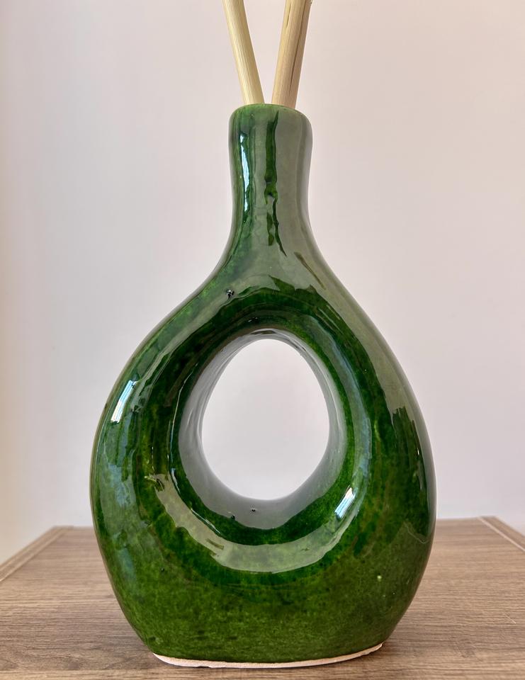 Jarrón de Cerámica de Diseño Art Deco Verde Esmeralda Ecológico Hecho a Mano, Artículo Decorativo de Mesa, Souks and Sables MA