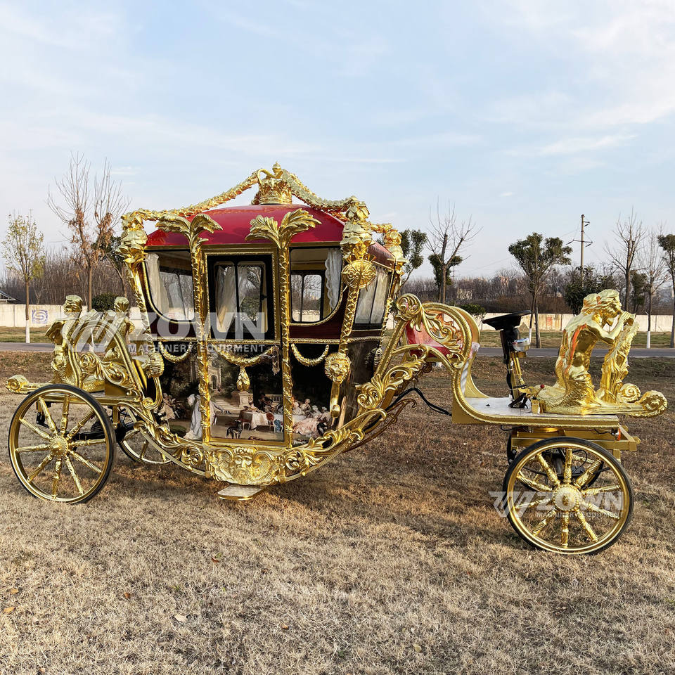 Carro de caballos eléctrico hecho a mano para bodas reales con 4 ruedas para turismo, transporte especial, capacidad para 4-6 personas
