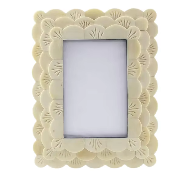 Marco de Fotos Elegante Hecho a Mano con Incrustaciones de Hueso y Borde Decorativo con Cuentas, Portafotos de Lujo Color Crema para un Estilo Sofisticado