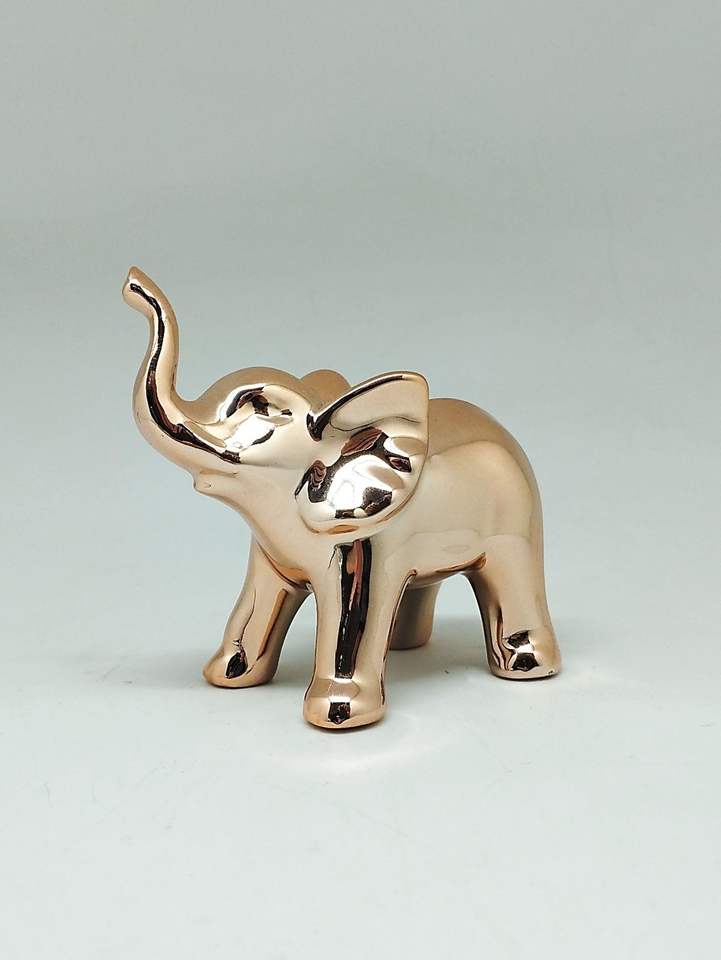 Estatua de elefante hecha a mano con acabado metálico para decoración de templos en el hogar y estilo interior tradicional.