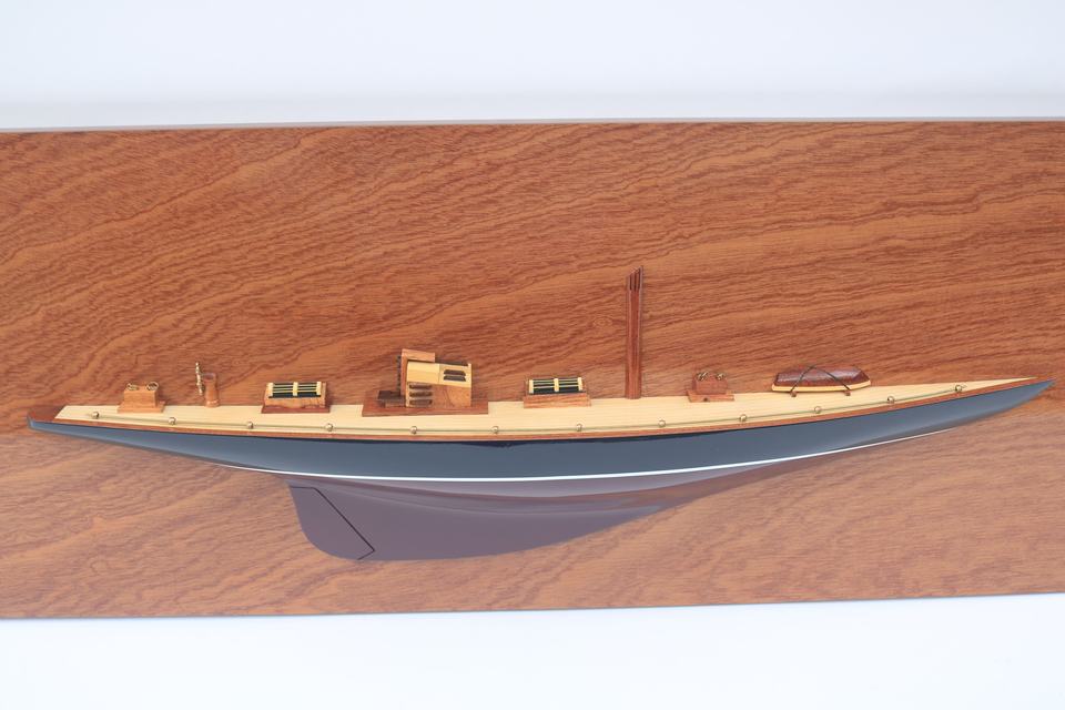 Modelo de medio casco Endeavour hecho a mano en madera pulida regalo de Navidad náutico y decoración del hogar
