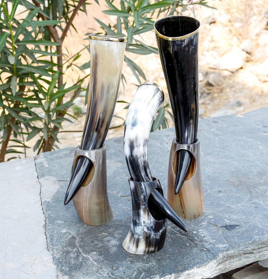 Cuerno para beber vikingo personalizado hecho a mano, soporte rústico Legends North Animal, estilo náutico, decorativo pulido