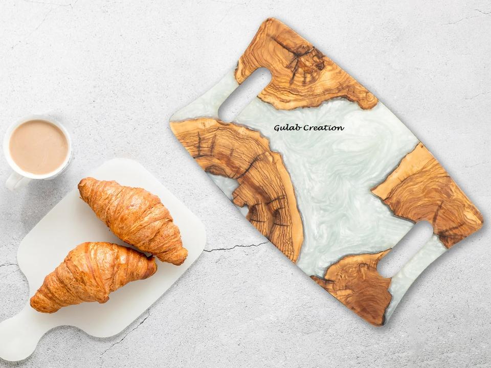 Tabla de cortar de resina epoxi hecha a mano y madera maciza, tabla de cortar decorativa para alimentos seguros para cocina y bandeja para servir charcutería