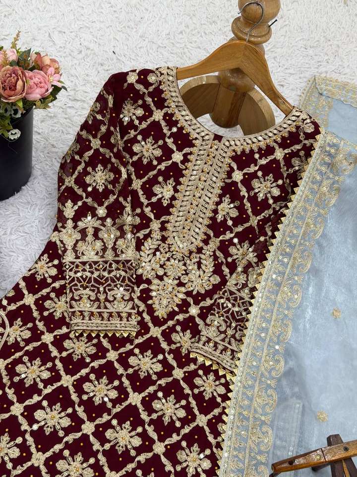 Tejidos Pent:Georgette Falso Pesado con Bordado de Cadena y Trabajo de Lentejuelas