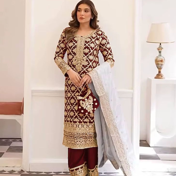 Tejido Superior:Georgette sintético pesado, pespunte, trabajo de lentejuelas y cuentas