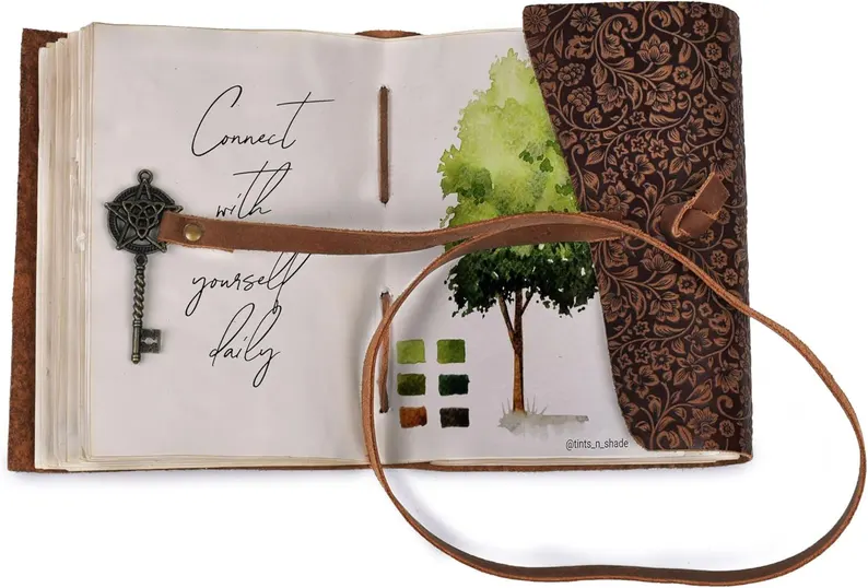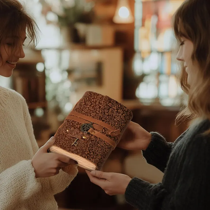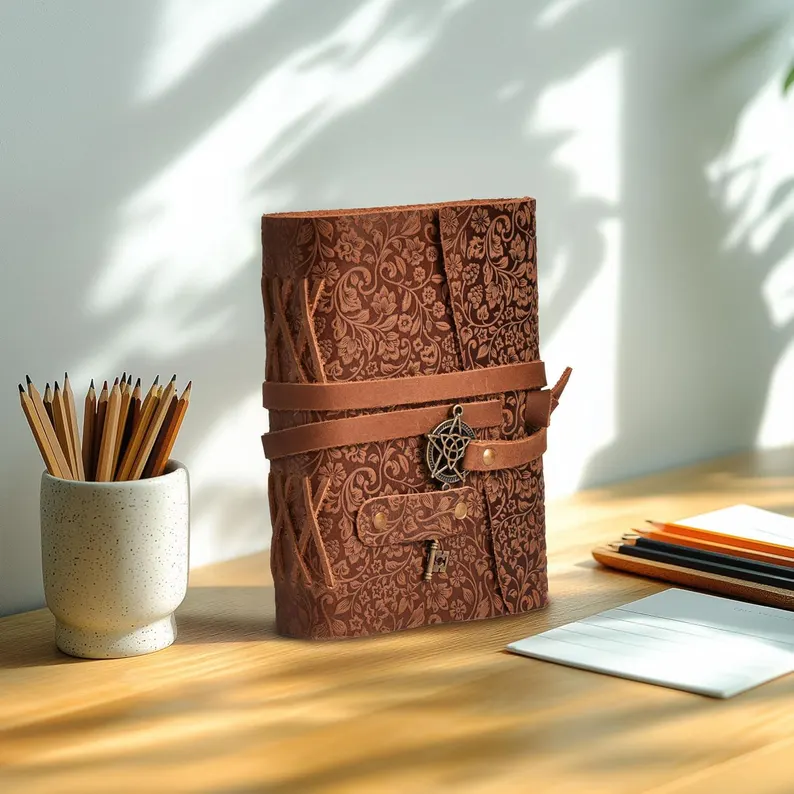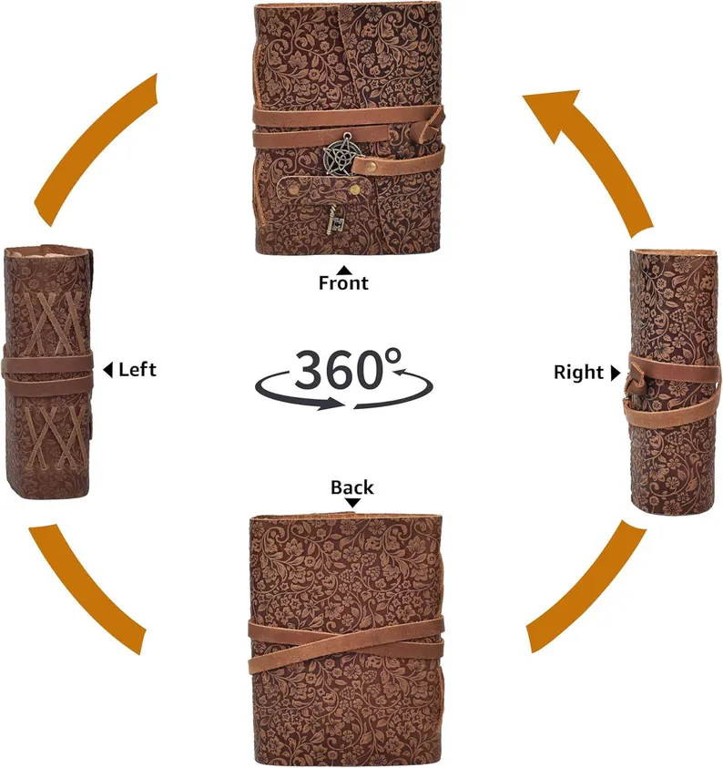 Cuaderno de Cuero con Grabado Floral Hecho a Mano, Papel sin Líneas con Borde Decorativo, Cuadernos de Regalo Vintage para Artistas